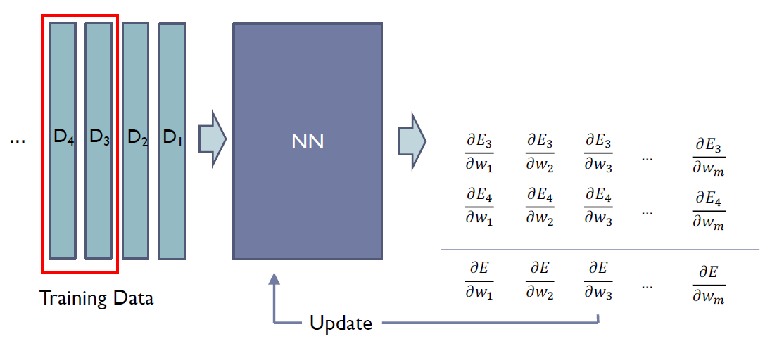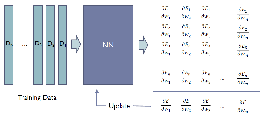 모든 E의 미분 값에 대해서 한번에 계산하고 이를 업데이트에 활용하였다.