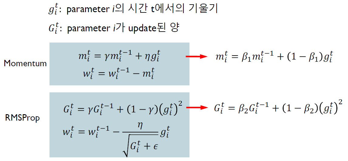 RMSProp과 Momentum이 적절히 석인 방법이다.