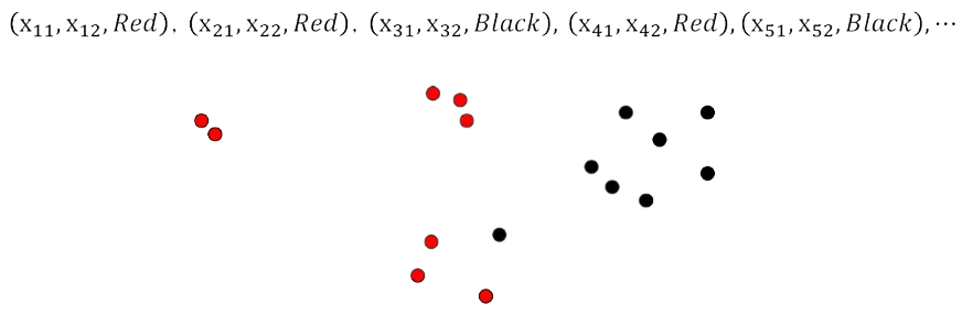 점을 검정색과 붉은색으로 분류하는 Binary-Class Classification이라고 불리는 문제이다.