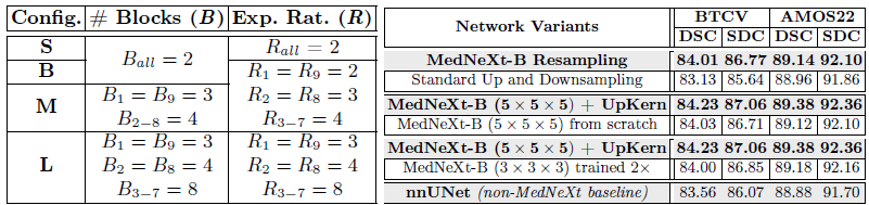 이를 위해 테이블 1(왼쪽)에 정리된 MedNeXt의 4가지 모델 구성을 사용하였다.
