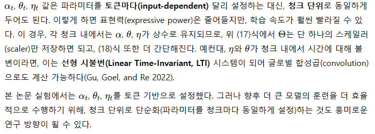 - 그런데 이것이 정말로 “길이가 몇 백만인 문맥을 Transformer 없이 효율적으로 다룰 수 있다”라는 식의 의미 있는 장점을, 구체적인 벤치마크 전부에서 확실히 보여주는지는 조금 애매합니다.