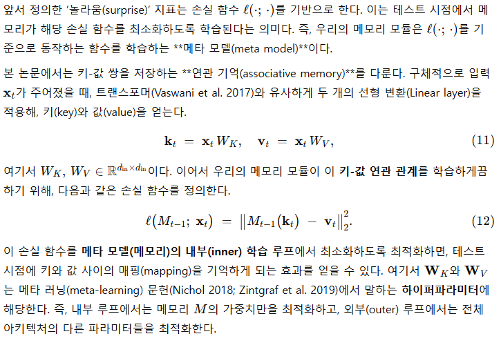 3 테스트 시점에서의 메모리 학습(Learning to Memorize at Test Time)