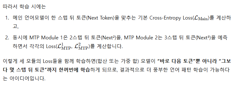 2.2 멀티 토큰 예측(Multi-Token Prediction, MTP)