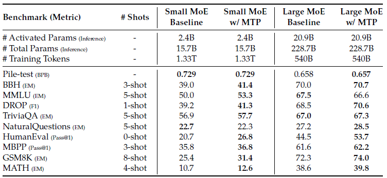 5.4.3 멀티 토큰 예측(MTP) 평가(Multi-Token Prediction Evaluation)