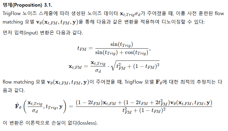 3.1 TrigFlow로의 훈련이 필요 없는 변환(Training-Free Transformation to TrigFlow)