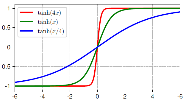 그림 3: 서로 다른 세 가지 값의 α에 따른 tanh(αx) 함수의 형태.