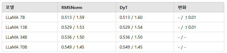 이 논문에서 RMSNorm과 DyT의 비교가 등장한 이유는 논문이 주로 Transformer 계열의 대형 언어 모델(LLM) 에서 성능을 평가했기 때문입니다.