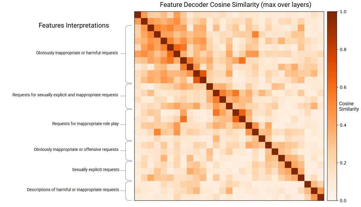 모델은 미세조정(finetuning) 과정에서 일반적인 목적의 "유해한 요청"이라는 특징(feature)을 구축한다. 이는 사전학습(pretraining) 과정에서 개별적인 유해한 요청의 특징들을 학습한 결과를 통합한 것이다. - 탈옥 공격(jailbreak) 사례 분석