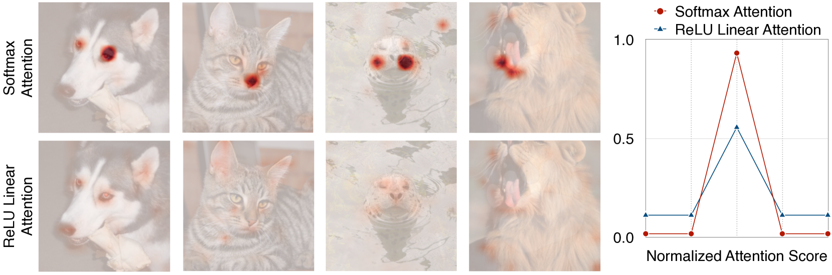 [그림 3: Softmax 어텐션 vs. ReLU 선형 어텐션]
