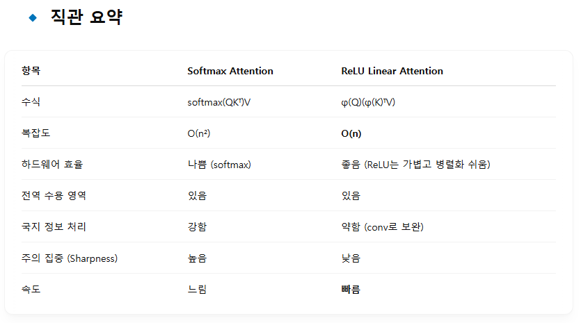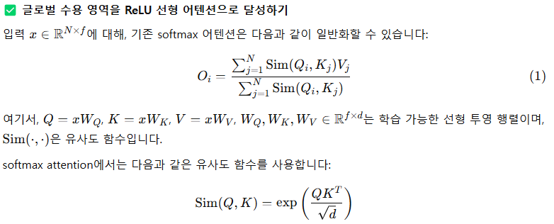 ⚠ ReLU 선형 어텐션의 한계와 해결