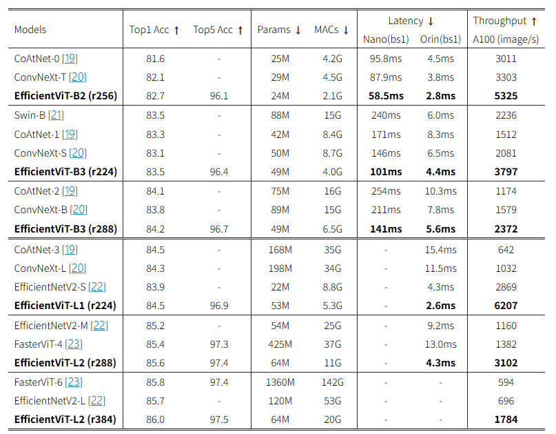 ✅ 다양한 크기의 EfficientViT 모델 계열