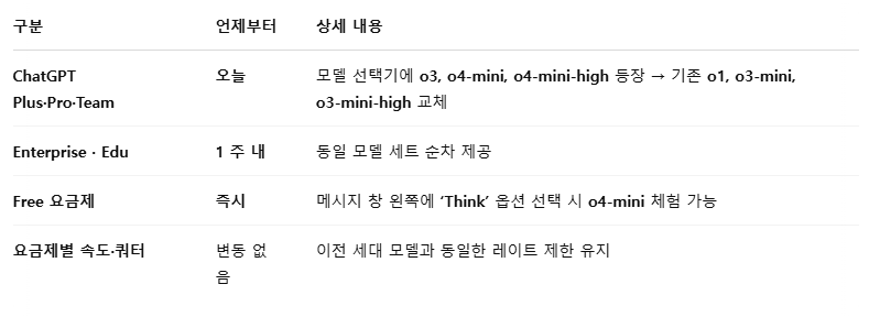 ‑ 풀 툴 액세스 지원 예정 (현재 Pro 사용자는 o1‑pro 계속 이용 가능) - 개발자 API
