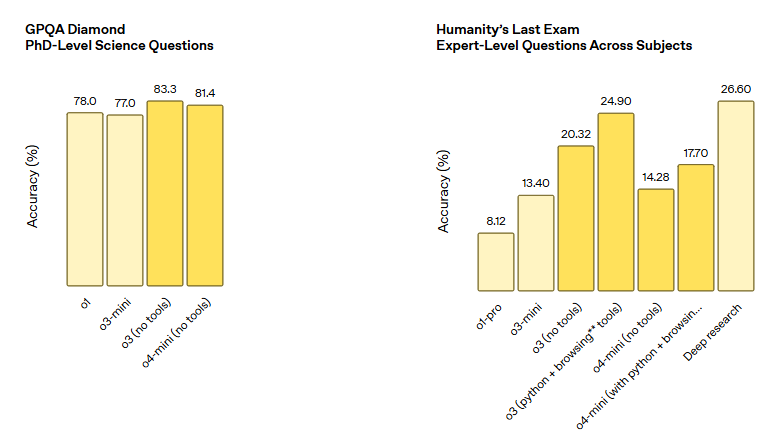 요약하면, o3와 o4‑mini는 지능뿐 아니라 비용 효율성에서도 전 세대를 넘어서는 새로운 기준을 세웠습니다.