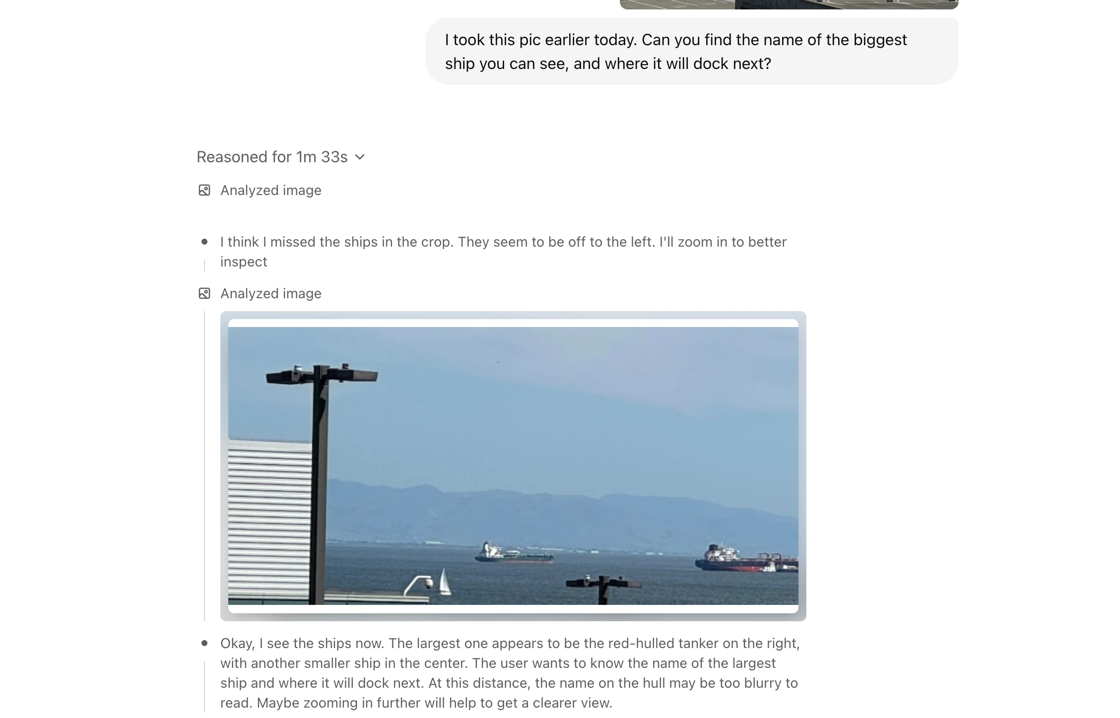 모델은 추론 과정에서 이미지를 즉석에서 회전·확대·변형하면서 분석합니다. - 업계 최고 수준의 시각 인식 정확도