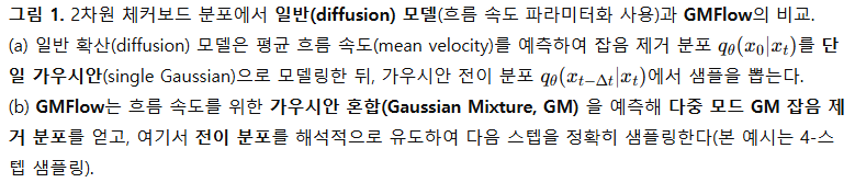 - GMFlow 제안: 가우시안 혼합 기반 잡음 제거 분포로 확산 모델을 일반화한 새로운 흐름 매칭 프레임워크