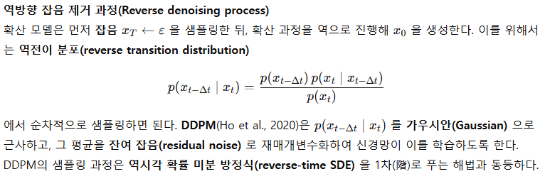 - 1차(1‑st order) 솔버: DDPM(Ho et al., 2020), Euler(= DDIM, Song et al., 2021a)