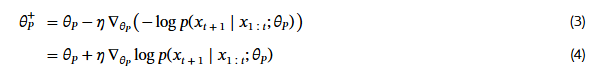 프록시 모델은 θₚ라는 파라미터로 정의되며, 이로부터 p(· | x₁:ₜ; θₚ) 형태의 샘플링 분포를 제공한다.