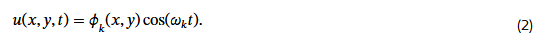 우리는 정상 상태의 진동 해(steady-state oscillatory solutions)에 관심이 있으므로, 해는 반드시 특정 진동수 ω_k를 갖는 고유 진동 모드(normal mode)