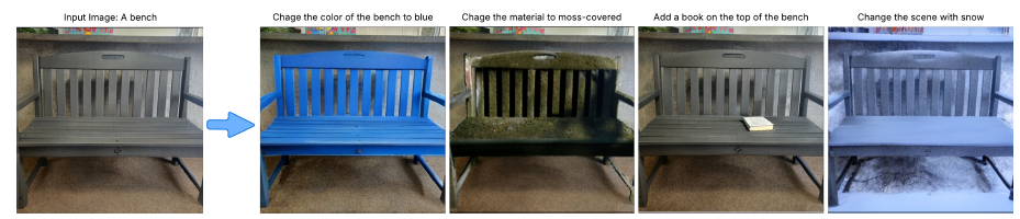 그림 9: STARFlow를 활용한 이미지 편집 예시. 입력 이미지와 간단한 텍스트 설명만으로, 모델은 학습된 prior를 바탕으로 다양한 편집 작업을 자연스럽게 수행함.