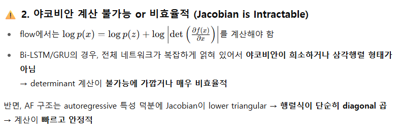 ✅ 왜 Transformer 기반 autoregressive flow를 고집했을까?