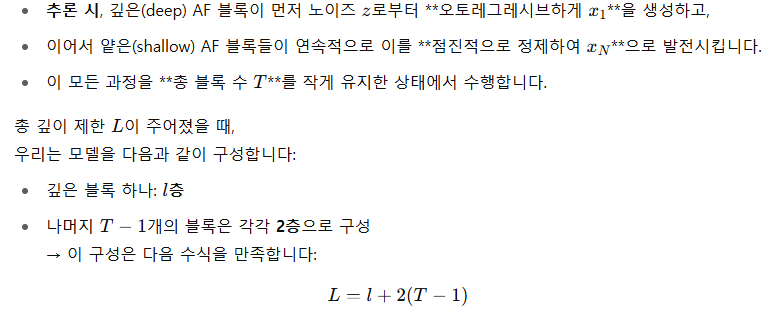 - TARFlow처럼 여러 개의 autoregressive block을 **다른 순서(ordering)**로 쌓으면,