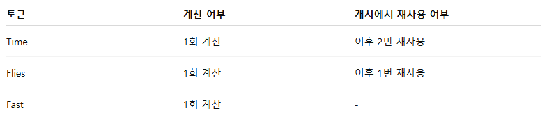 아래 표는 각 단계에서의 계산 및 캐싱 동작을 요약한 것입니다: