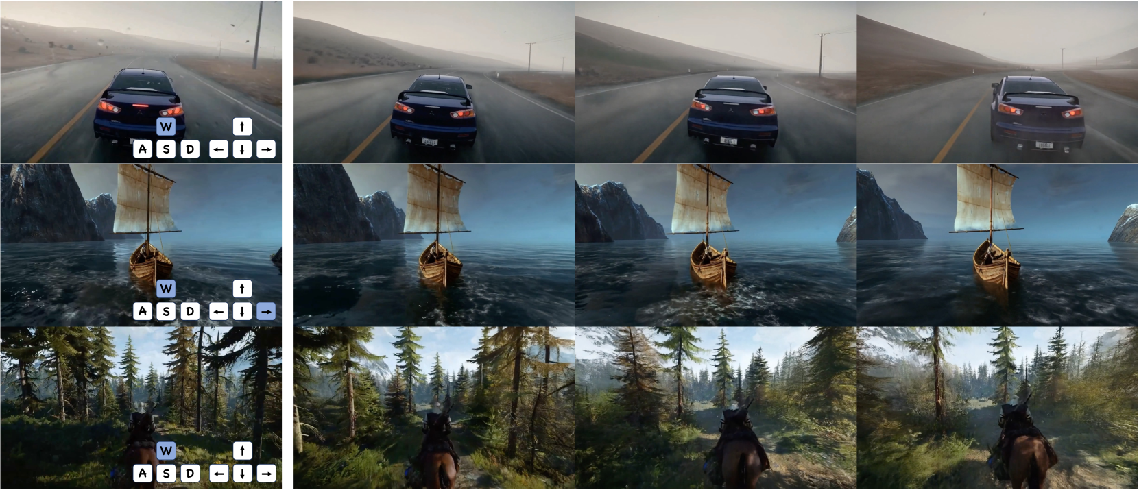 그림 9: 3인칭 게임 시점에서의 인터랙티브 비디오 생성 결과