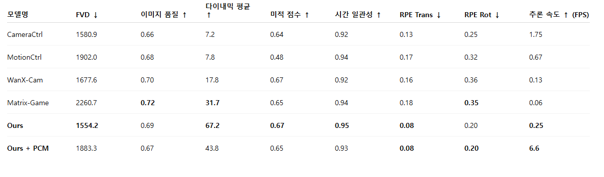 - 제어력(controllability), 장기 비디오 생성(long-form synthesis), 히스토리 보존(history preservation)에서의 강점을 기반으로
