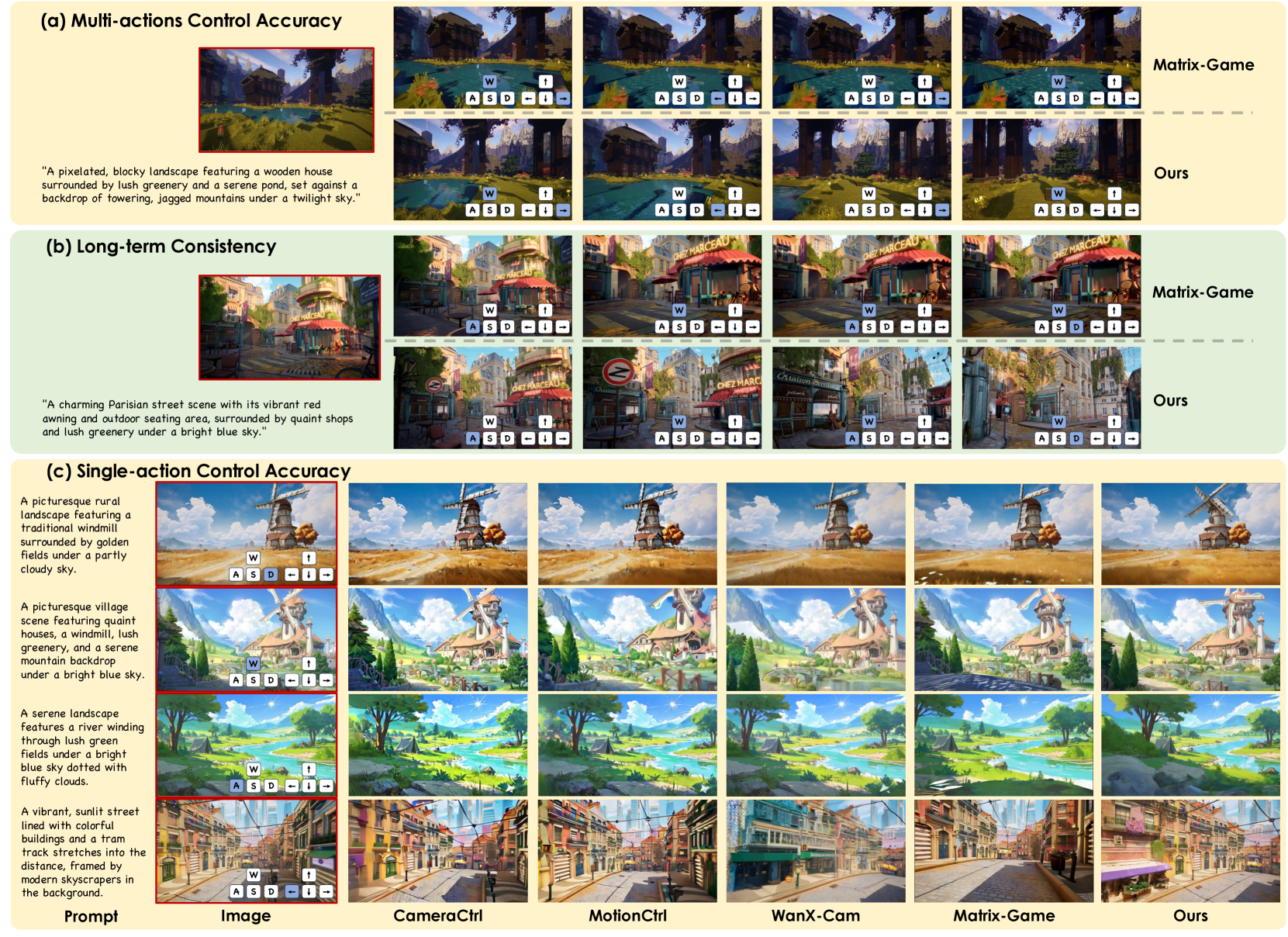 - Matrix-Game 학습에 사용된 Minecraft 환경을 활용하여 양측 모델을 비교하였고,
