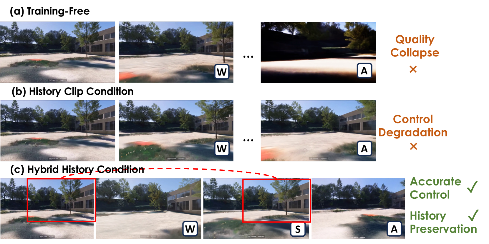 - 장기적 공간 및 시간 일관성을 유지하는 하이브리드 히스토리 조건 학습 전략을 도입하였습니다.