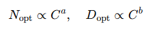 이 조건 하에서, 최적의 파라미터 수와 최적의 데이터 크기는 다음과 같은 관계를 따른다: