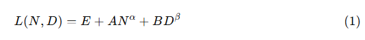 L(N, D) = E + A·N^(-α) + B·D^(-β) - 토큰 수가 동일하므로 D 항은 무시하고: