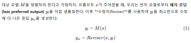 - 한 출력만 최소한으로 수정해 선호도를 표현하는 새로운 선호 쌍 생성 방법.