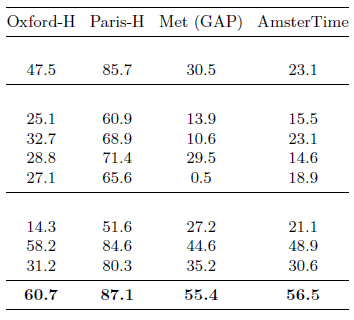 우리는 표 18, 표 19에서 지구 관측 과제에 대한 다양한 방법의 성능을 비교했다.