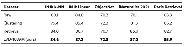 - DINOv2에서 사용된 다중 코사인 스케줄 대신, 100만(1M) iteration 동안 상수 하이퍼파라미터 스케줄을 적용 → 더 강력한 성능 달성.