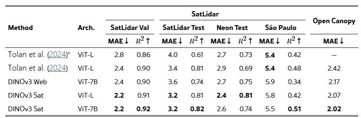 - SatLidar1M val, Neon, Open-Canopy에서 Tolan et al. (2024)보다 우수했지만