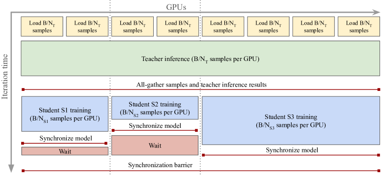 - 마지막 파이프라인 단계에서 고해상도 학습을 수행한 뒤, 단일 교사–다중 학생(single-teacher multiple-students) 구조의 효율적 증류 기법을 개발.