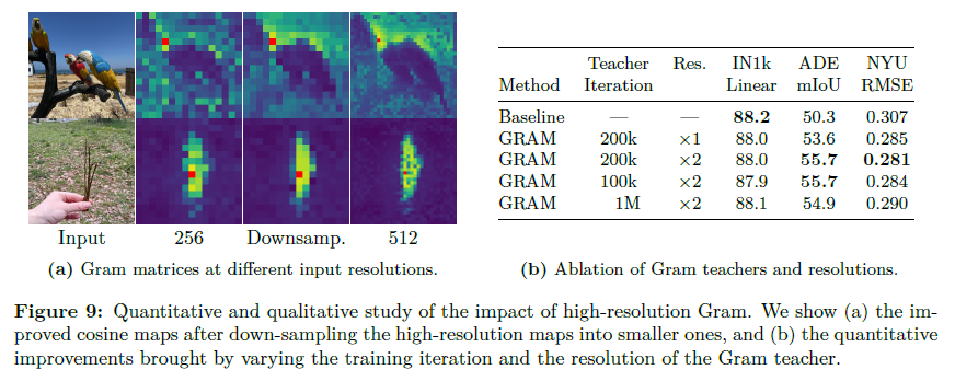 둘째, Gram anchoring이라 불리는 새로운 방법을 도입하여, 긴 학습 과정에서 발생하는 밀집(dense) 특성 맵의 품질 저하라는 기존의 알려진 문제를 효과적으로 해결한다.