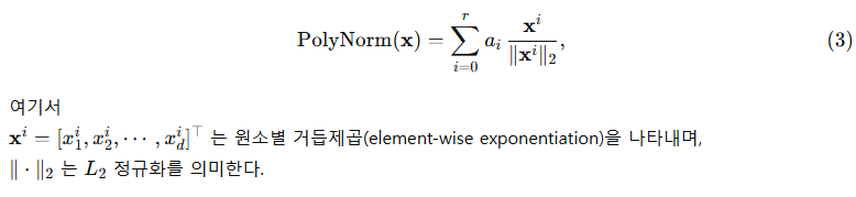 Type II PolyCom의 경우, 각 항의 크기가 일관되도록 거듭제곱을 정규화(normalize)하는 PolyNorm을 제안한다.
