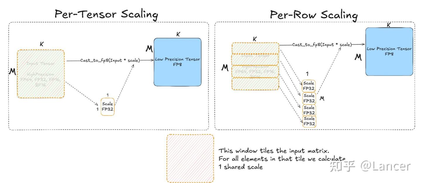 → 오버헤드가 낮다. - Per-tensor 스케일링은 여러 커널이 협력해야 하므로