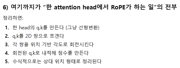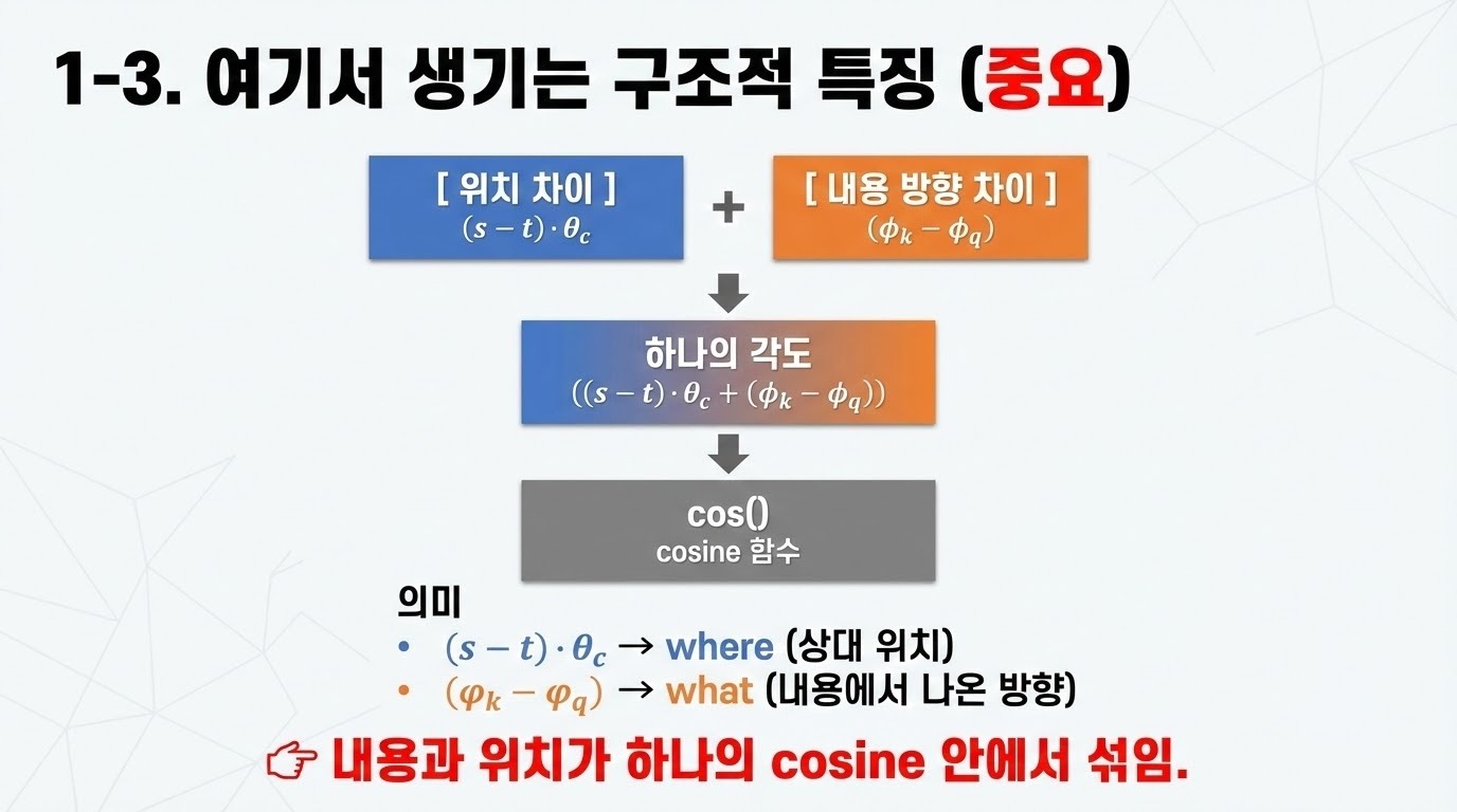 이 표기를 사용하면 회전을 합성할 수 있고, 어텐션 점수는 다음과 같이 쓸 수 있다.