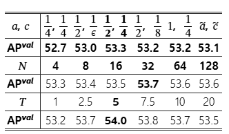표 4. D-FINE-L의 하이퍼파라미터 어블레이션 결과