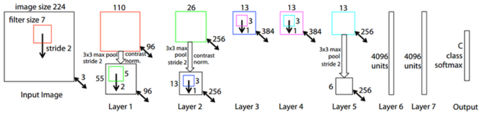 - 그러나 ZFNet에서는 AlexNet에 비해 더 큰 필터 크기와 작은 스트라이드(stride)를 사용하여 공간적인 정보를 더 잘 보존합니다.
