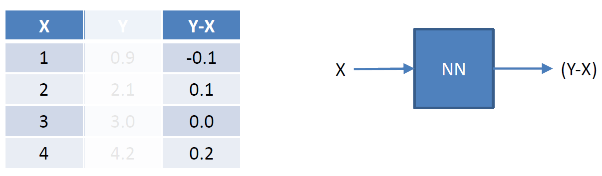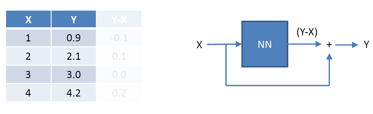 하지만 Residual은 다음과 같이 작동한다. 먼저, Y-X에 대한 값을 예측하는 NN을 만든다.
