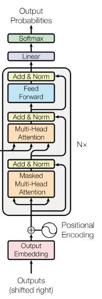 추가로 디코더에 있는 masked decoder는 이전에 생성된 출력에 대한 셀프 어텐션만 사용된다. 즉, 이후에 생성된 건 사용못한다는 말이다.