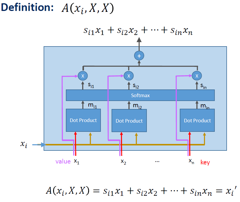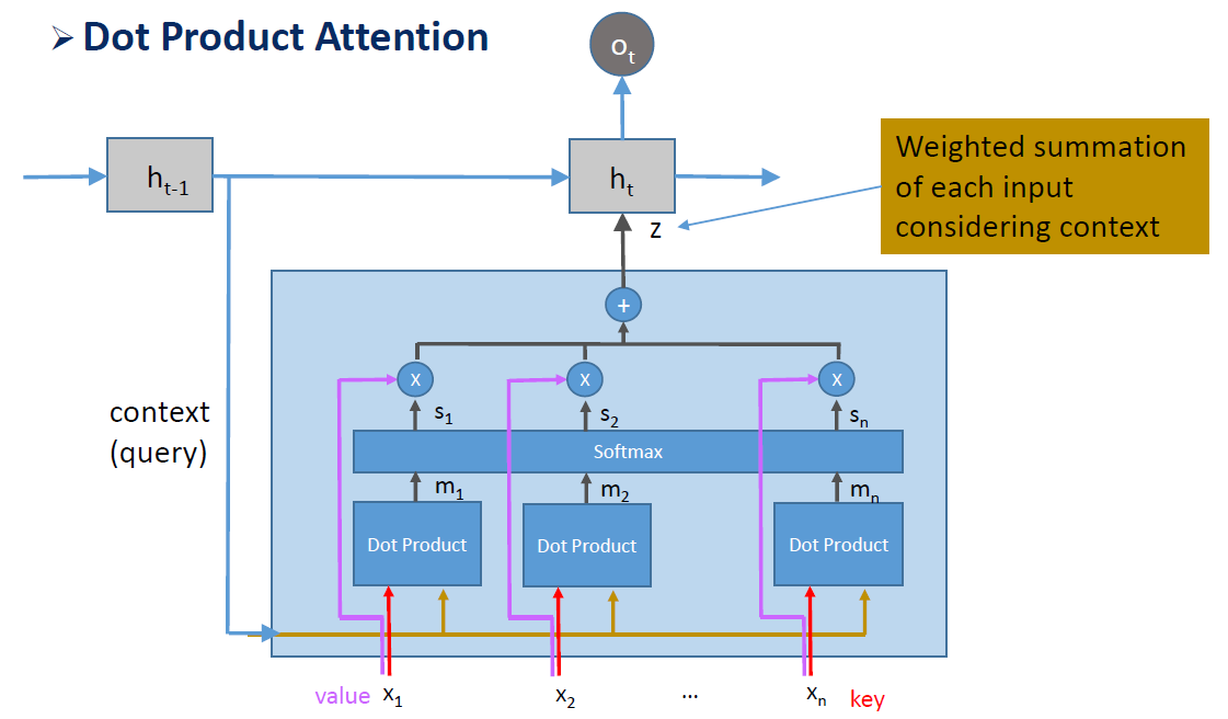 이게 앞에서 많은 h를 거쳐왔다면 context(query)에 쌓여있을 것이고 이를 다음과 같이 표현할 수 있다.