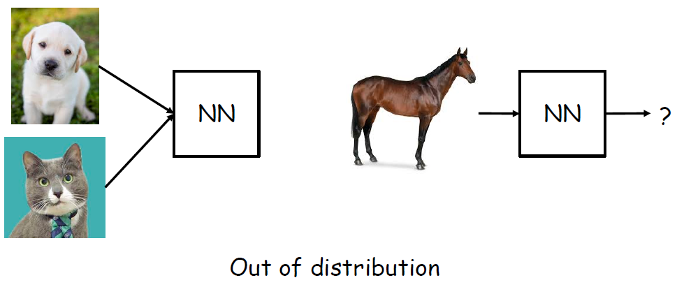 위의 그림처럼 개와 고양이만 학습한 NN이 말을 입력받으면 "모르겠어요"라고 말할 수 있을까?