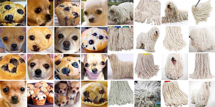 위의 이미지가 햇갈리는가? 개와 머핀, 개와 대걸래의 사진이다. 우리는 명확하게 인식하지만 컴퓨터는 명확하게 인식하지 못한다.