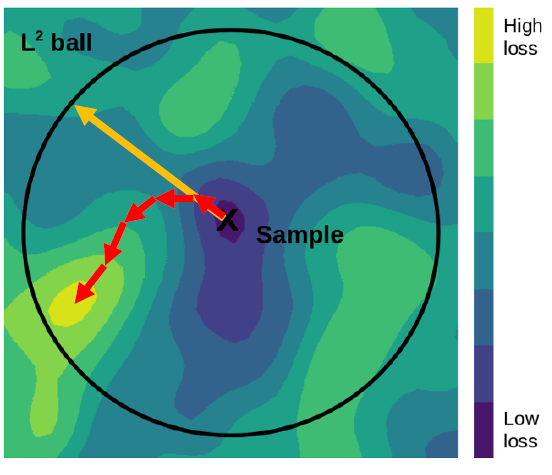 대상 레이블의 기울기 방향을 반복적으로 찾아 노이즈 추가