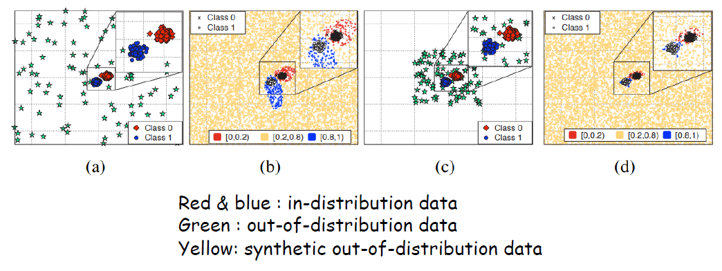 – (c) & (d) out-of-distribution 데이터는 in-dist 주위에 밀집되어 있습니다.